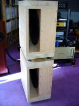 The cabinet for the ESL tweeter and the OTL tube amplifier V-typ-MHT on top of SYMPHONIC enclosure