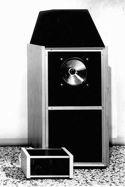 Die MKII version of1983 without Subwoofer DCS1 (left) and with Subwoofer and the R.A.E. tube amplifier "Clarity" (right)